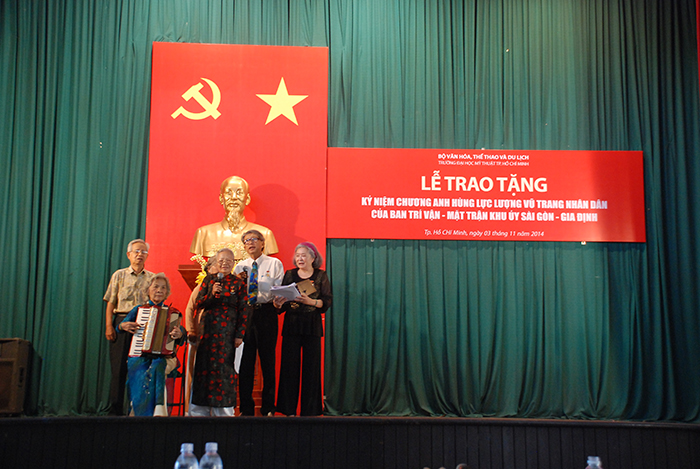 Nhân dịp kỷ niệm 69 năm ngày Quốc khánh nước CHXHCN Việt Nam (2/9/1945 – 2/9/2014) và năm học mới 2014 – 2015, sáng ngày 03/11/2014, Mặt trận Tổ quốc Việt Nam Tp. Hồ Chí Minh, Ban Liên lạc truyền thống, Ban Trí vận – Mặt trận Khu ủy Sài Gòn – Gia Định đã quyết định trao tặng Kỷ niệm chương Anh Hùng Lực Lượng Vũ Trang Nhân Dân của Ban Trí vận - Mặt trận khu ủy Sài Gòn – Gia Định cho Trường đại học Mỹ thuật Tp. Hồ Chí Minh, tại Hội trường của nhà trường.